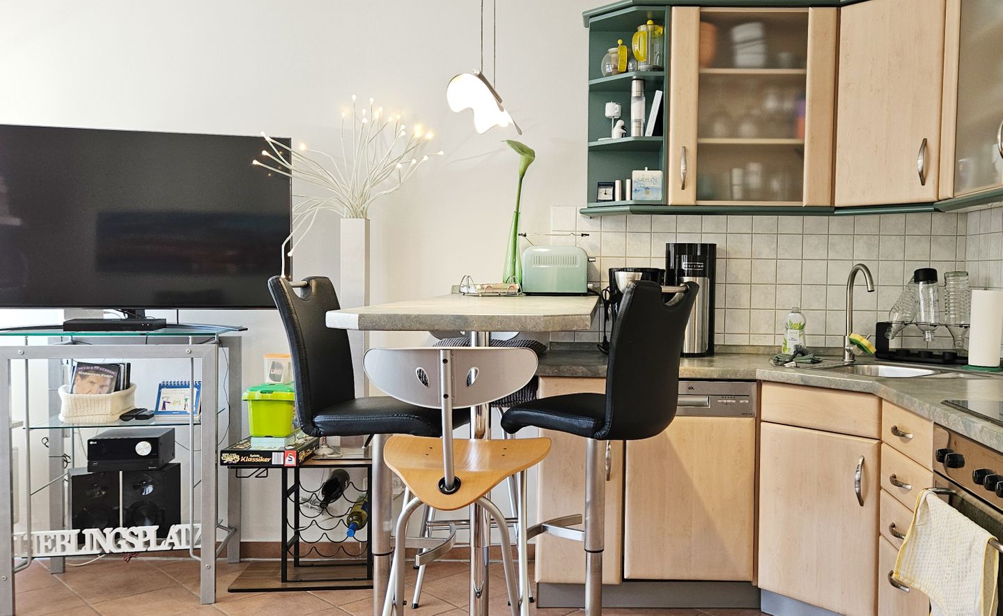 Die Wohnung ist mit viel Liebe zum Detail eingerichtet. Man fühlt sich sofort wohl. Alles, was man braucht, ist auch vorhanden.